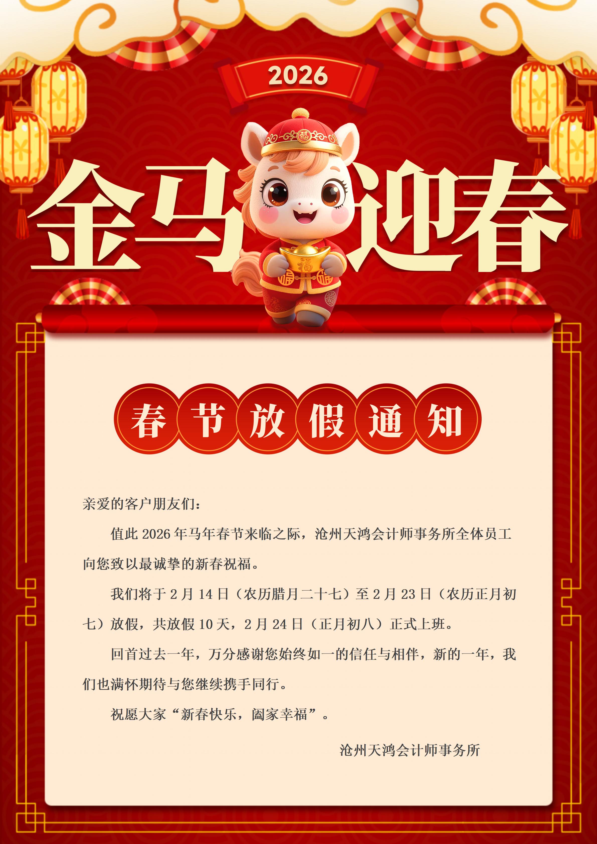 天鸿春节放假通知